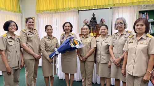 นางสาวรุ่งรัตน์ ช่วยเนื่อง พัฒนาการทุ่งสง พร้อมด้วยเจ้าหน้าที่สำนักงานพัฒนาชุมชนอำเภอทุ่งสง ร่วมแสดงความยินดีกับ นางมุกดา หลิมนุกูล เนื่องในโอกาสมารับตำแหน่ง ผู้ตรวจราชการกรมการพัฒนาชุมชน ณ ศูนย์ศึกษาและพัฒนาชุมชนนครศรีธรรมราช
